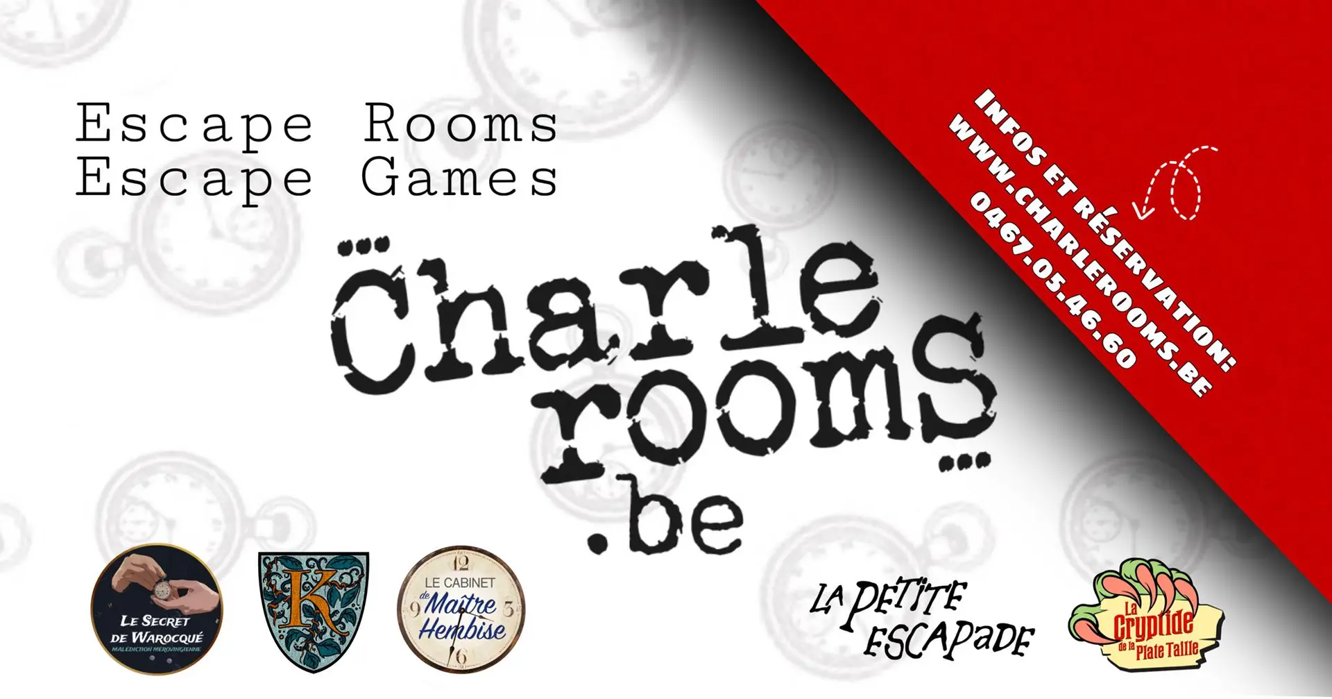 In samenwerking met de Crocodile Rouge biedt Charlerooms escape games (binnen en buiten) die ideaal zijn voor uw teamuitjes!