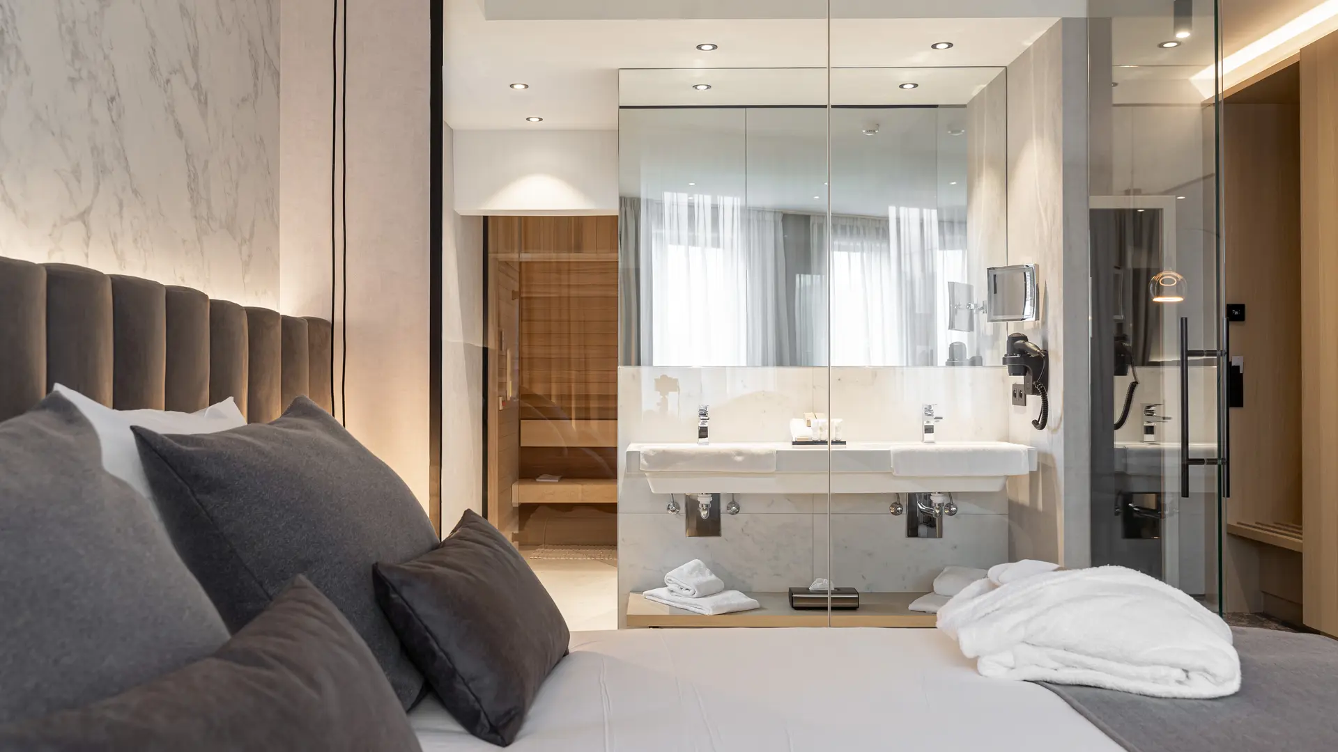 In een elegant design bieden de 145 kamers de keuze tussen comfortkamers en ruime suites. De sterke punten van het hotel zijn de luxueuze Oriental, Scandinavian en Hydro Suites en de gloednieuwe Safari Suite. In elk van hen kunt u genieten van een moment van zenitude met ofwel een jacuzzi, hammam, sauna of alle drie tegelijk om u een moment van puur geluk te bezorgen! Het "Quai 5 Restaurant" biedt een traditionele, internationaal geïnspireerde keuken en de "Quai 5 Brasserie" biedt een snelle service type keuken.