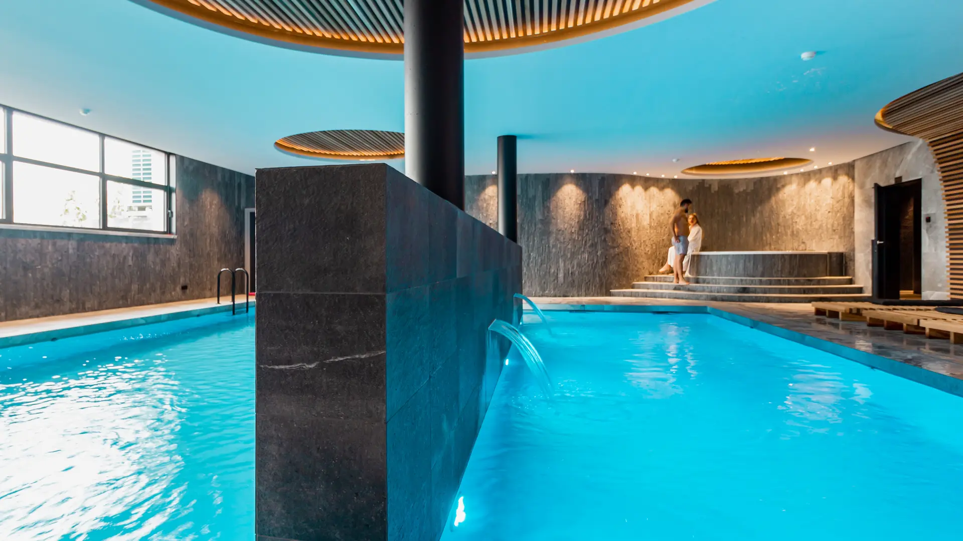 Op het programma: groepslessen, behandelingen, massages, overdekt zwembad met zwemgang, jacuzzi, sauna, hammam, zintuigenparcours, sneeuwdouche, floatruimte en nog veel meer.