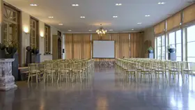 Cette très élégante propriété d’allure néo-classique du 19e siècle vous fait pénétrer dans une atmosphère détendue et apaisante. Lumineuse grâce à son orangerie, elle constitue un site privilégié et modulable, propice aux présentations commerciales et aux réunions professionnelles comme aux réceptions festives. Un parc de 2 hectares et son grand parking privé vous accueille en toute sérénité