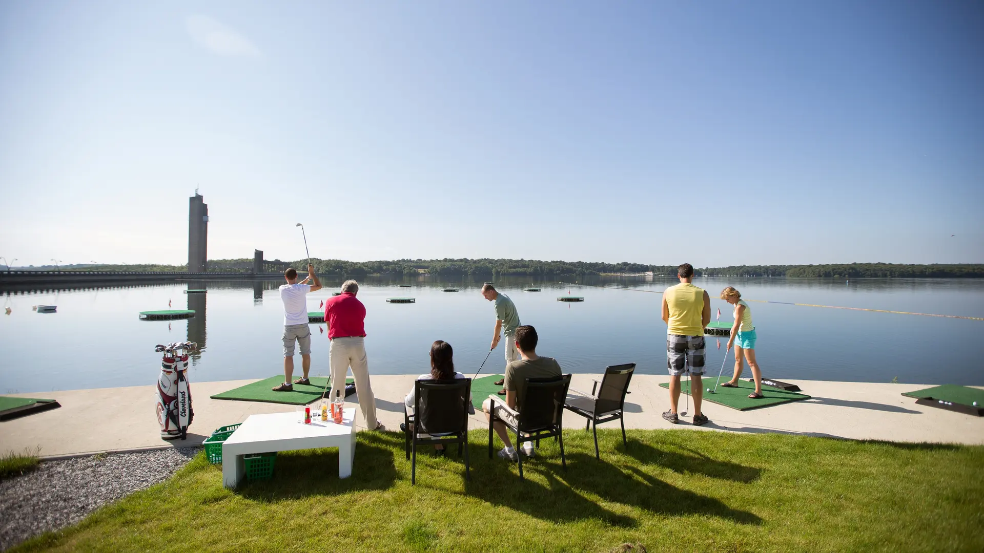 Aquacentre : piscine ludique avec jets massants, canons à eau, jacuzzi (2 heures) Centre Wellness « A l’heure du bien-être » : 3 saunas différents, un hammam, 2 jacuzzis, une pièce de luminothérapie avec des matelas d'eau, une piscine extérieure chauffée (3 heures – privatisation du centre à partir de 10 personnes) Natura Parc : 8 parcours suspendus dans les arbres (difficultés progressives, de 1 à 25m du sol), tyroliennes géantes passant au-dessus du lac, saut pendulaire (3 heures – jusqu’à 200 personnes) Balades en segway (2 heures – groupe de 20 personnes) Randonnées pédestres ou à vélo (balades balisées et circuits vélos – réseau RAVeL) Crocodile Rouge : Amphibus, Laser Game, Aqua Golf, visite guidée du barrage de la Plate Taille, initiation au char à voile, ... Spin Cablepark : initiation au téléski nautique (1 heure – groupe de 25 personnes) Espace Fun (kayak, stand up paddle, planche à voile) Golf Entertainment Center : « Fun Park » (1e approche du golf), zone académique (practice en partie couvert) et Golf Club des Lacs (golf de 9 trous) Bike Park : pistes VTT permanentes, différentes pistes (dual slalom, free ride), ... Partenariat avec Gravity Park, aérodrome situé à proximité : sauts en parachutes en tandem, baptême de l’air en hélicoptère, en ULM, ... Grands parkings (300 places) – Possibilités d’hébergement (village de vacances, résidence hôtelière 4* de 92 chambres/studios/appartements) – Différents espaces horeca sur place et à proximité – Centre de séminaire et salle de cinéma de 160 places